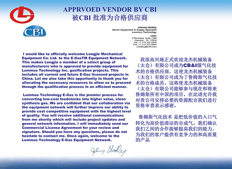 龍杰機械先后為中石油、中石化、中海油、神華寧煤、中煤集團、國家能源集團、煙臺萬華集團、恒力石化、恒逸石化、永榮集團、晉煤集團、心連心化工集團、昊源化工、浙石化、裕龍石化等知名企業的煤制氣、煤制烯烴、煤制乙二醇、煤制芳烴、聚乙烯、聚丙烯、環己酮、己內酰胺、合成氨、尿素、變換、凈化、脫硫、甲醇、二甲基亞砜、硫酸、硝酸、硝銨等項目(裝置)成功提供了多臺主體換熱器、各類塔器、反應器等過程裝備。
